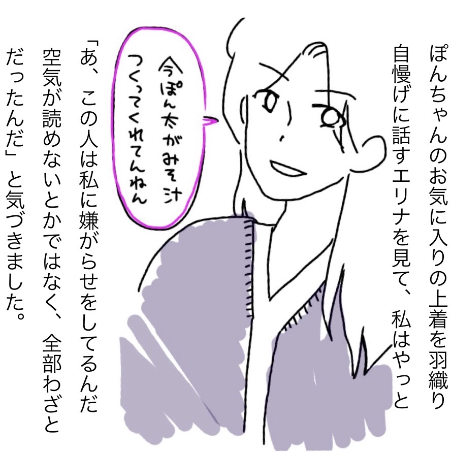 ぽんちゃんの上着と二人分しかない味噌汁を